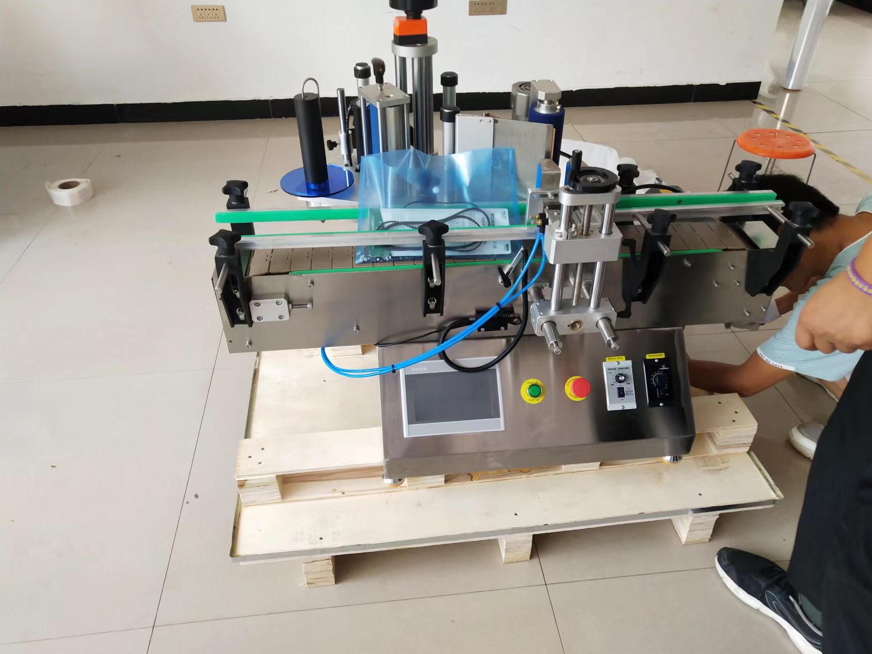 3.標(biāo)簽前后不對齊可以調(diào)整支撐桿的傾斜度,使標(biāo)簽恢復(fù)到需要貼標(biāo)的位置